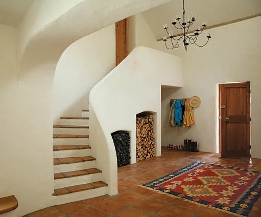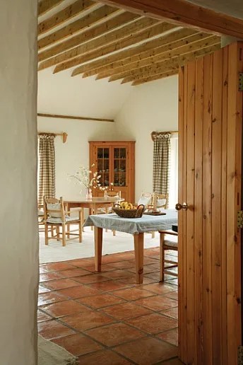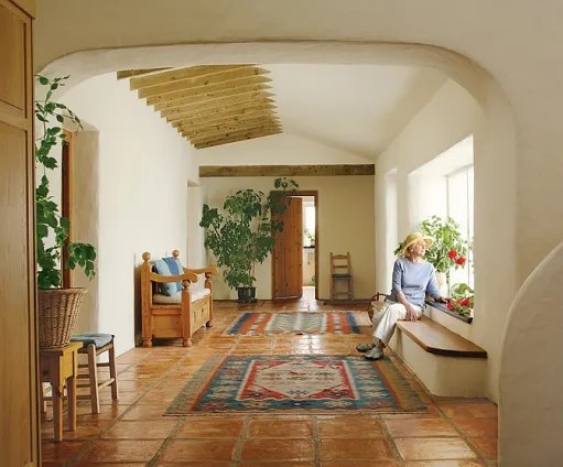 La semplicità è ingannevole. Il tetto in realtà maschera una coppia di ali a due piani sul lato opposto, che abbracciano un piccolo cortile lastricato in ardesia. La coppia voleva che la casa ospitasse amici e familiari e ogni ala ospita camere per gli ospiti al secondo piano. Il cortile protetto ospita vasi di erbe aromatiche che la Lansbury usa per cucinare.