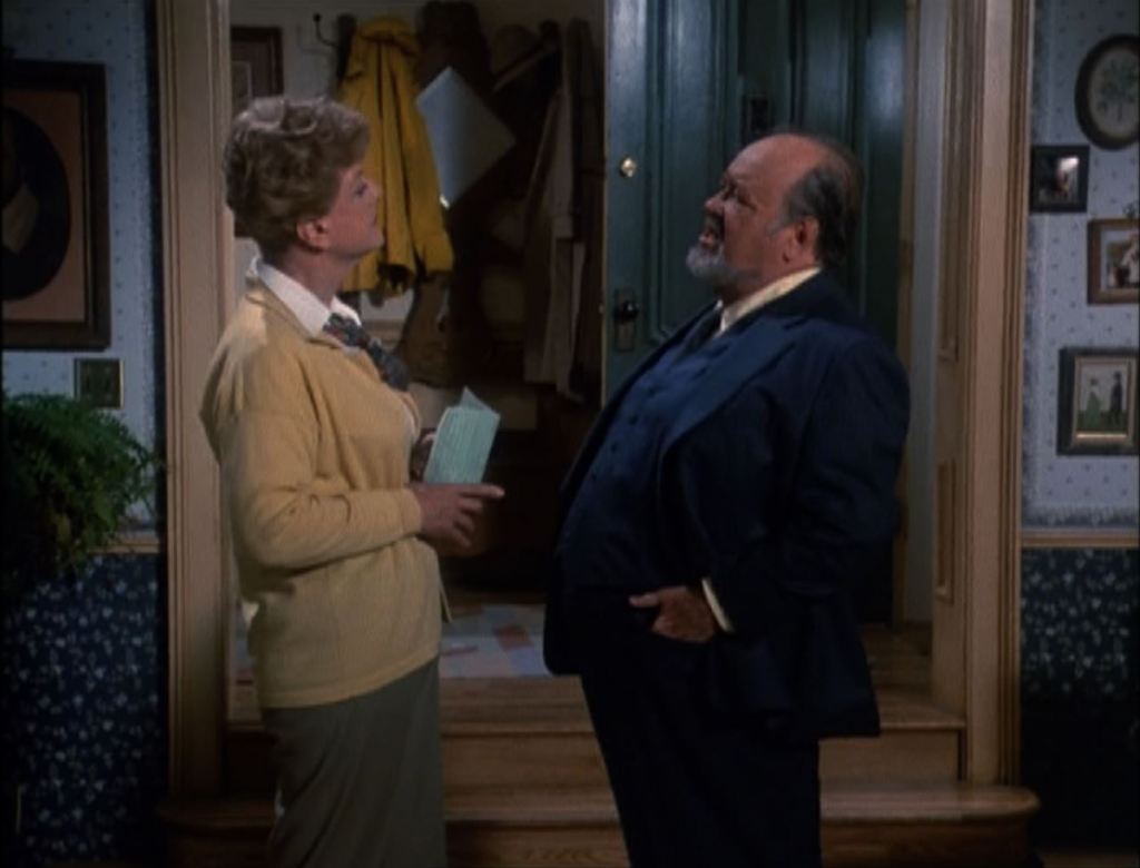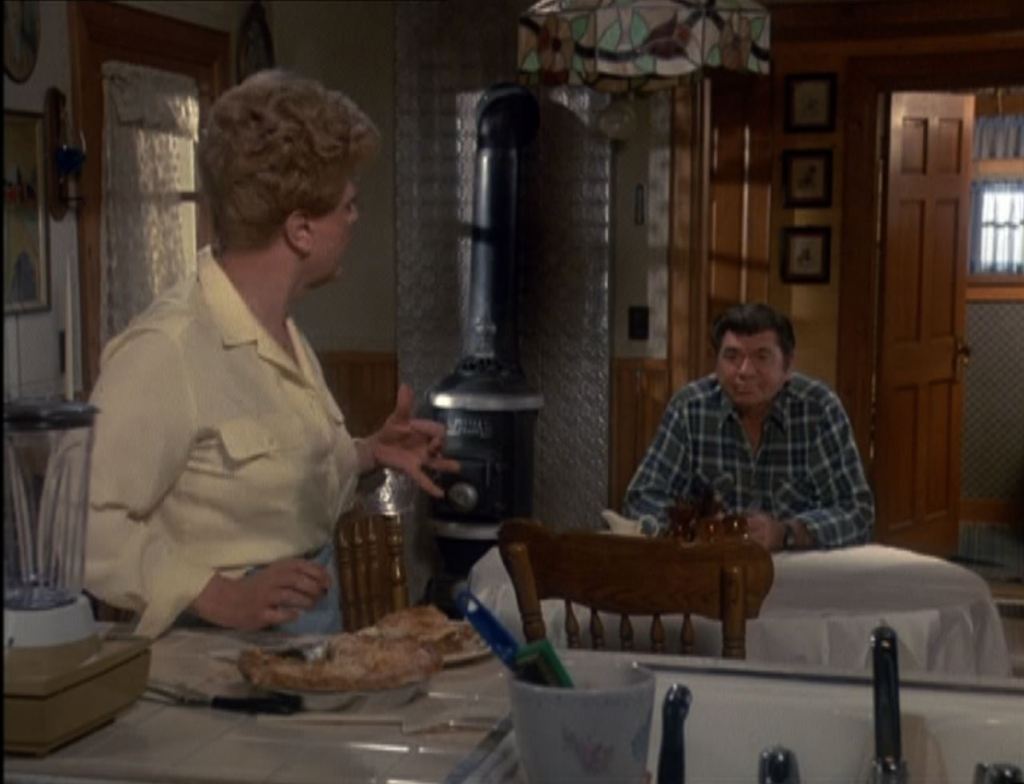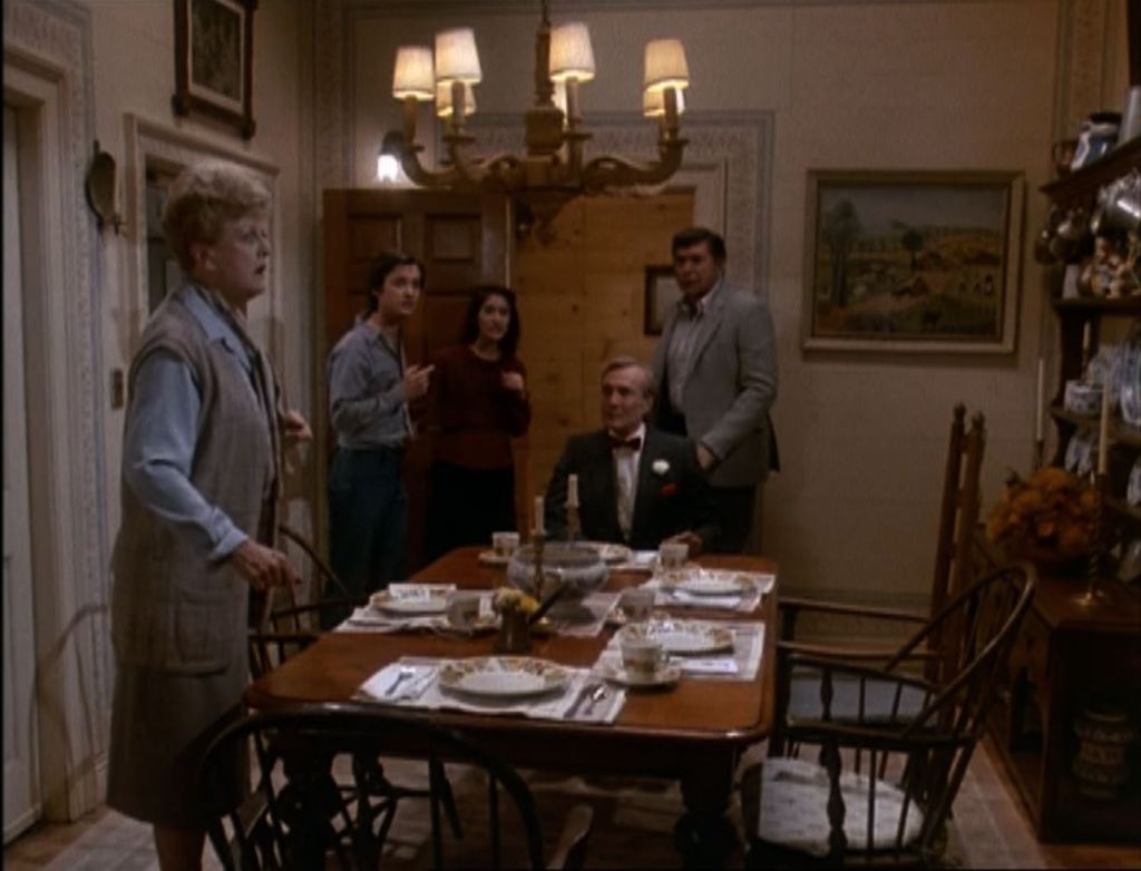 Jessica e il suo amico Ethan Cragg (Claude Akins), qui alla sua ultima apparizione nella serie, si trovano in cucina davanti ad una Apple Pie (click per la ricetta) appena sfornata. Ethan non aspetta altro che addentare la prima fetta, ma Jessica è distratta da una notizia in TV.