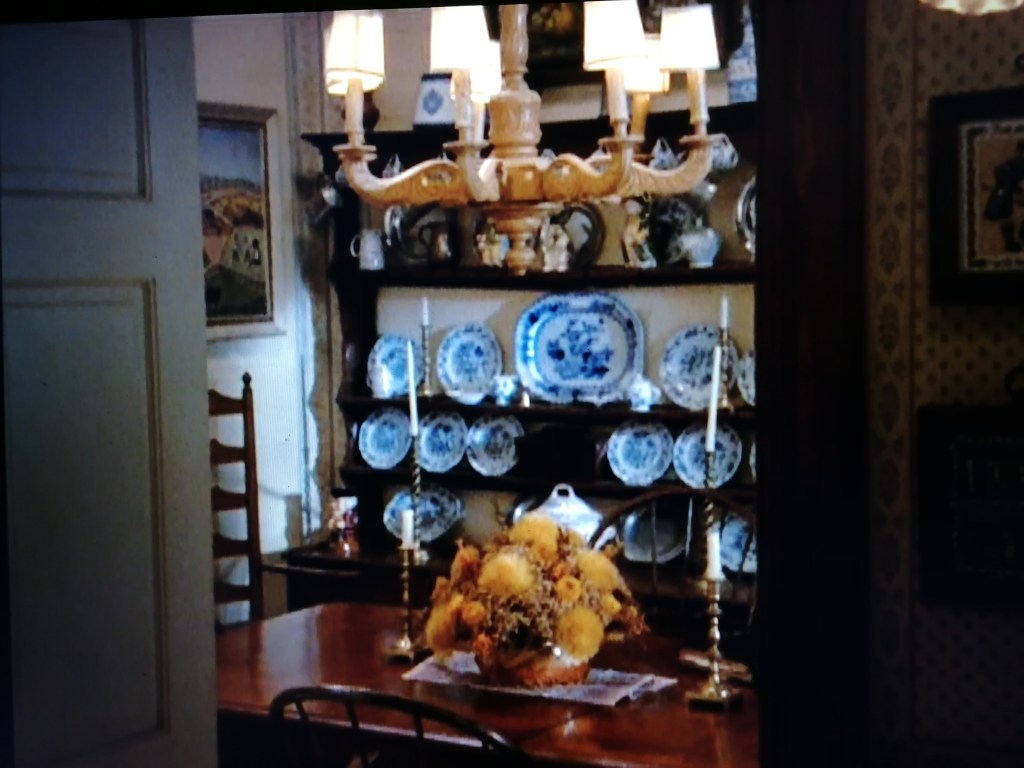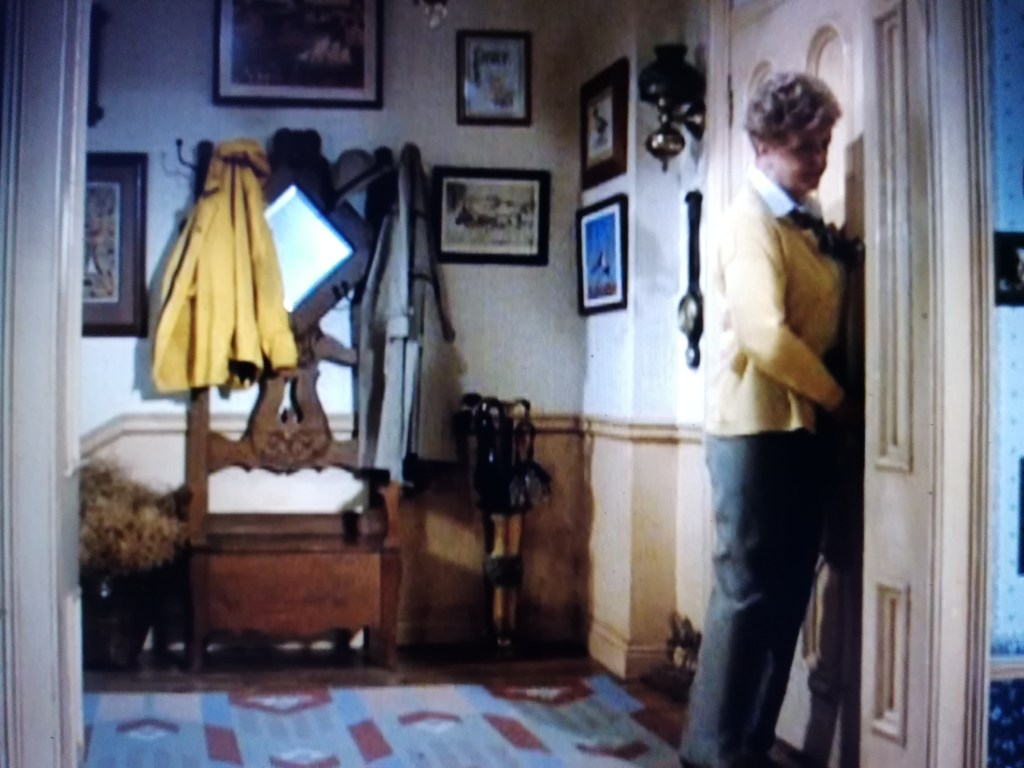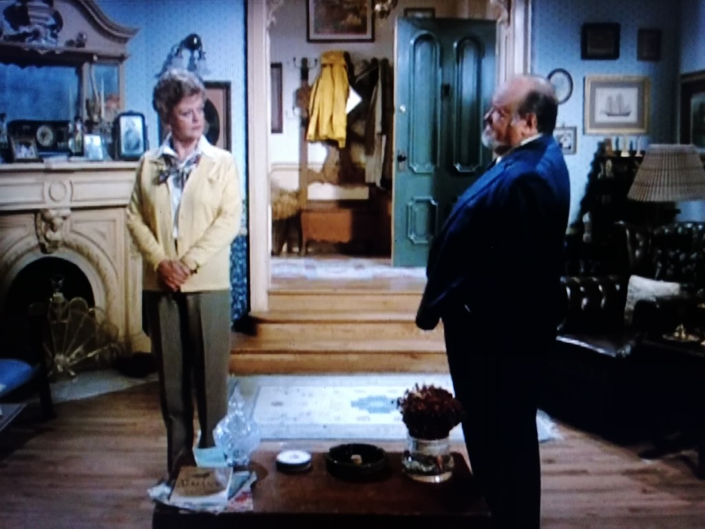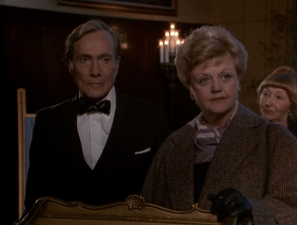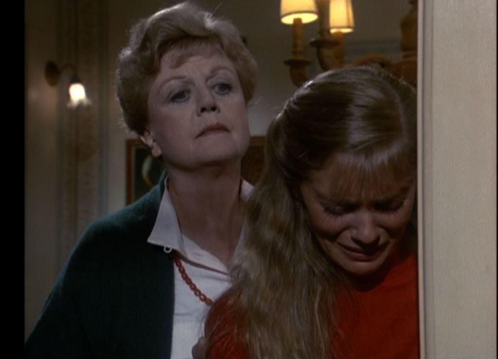 A sinistra, accanto a Jessica, il caminetto decorato con, sulla mensola, diversi ritratti di familiari (tra cui il ritratto della madre di Angela Lansbury, Moyna McGill).