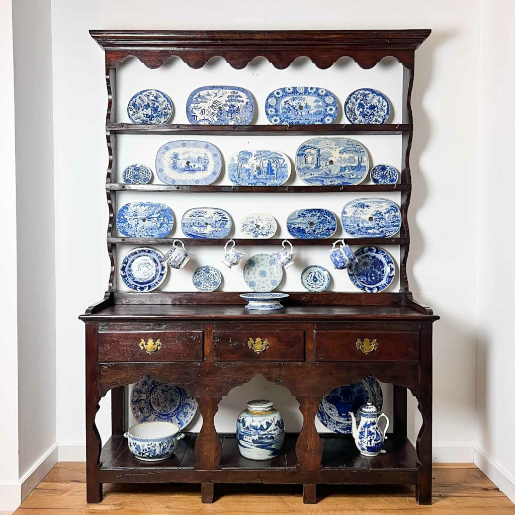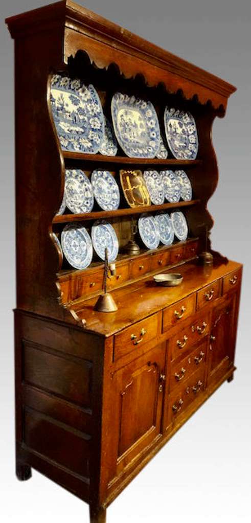 Questi esemplari della tradizione inglese, sono chiamati infatti “Welsh dresser” e dal colore del legno si direbbe di quercia. Se ne trovano ancora diversi esemplari nel mercato dell’antiquariato risalenti al 18esimo secolo. Possono avere la base aperta oppure chiusa da ante.