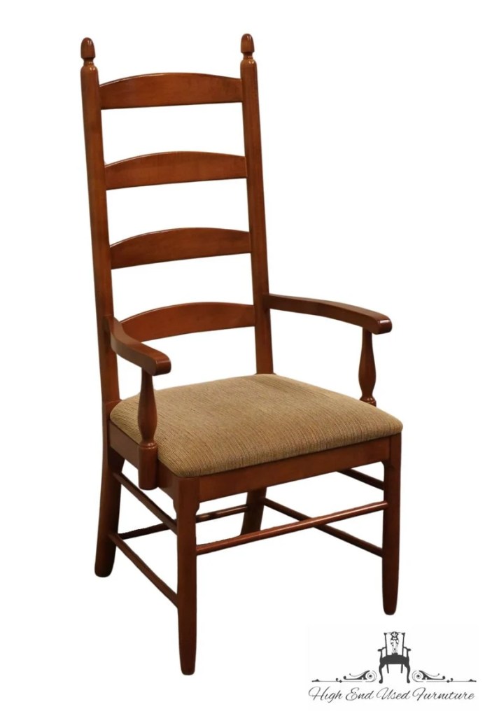 La quinta sedia, diversa dalle altre, è un altro esempio di classica sedia americana metà ottocento: la “ladderback” chair, ovvero una seduta con lo schienale “a scala”.