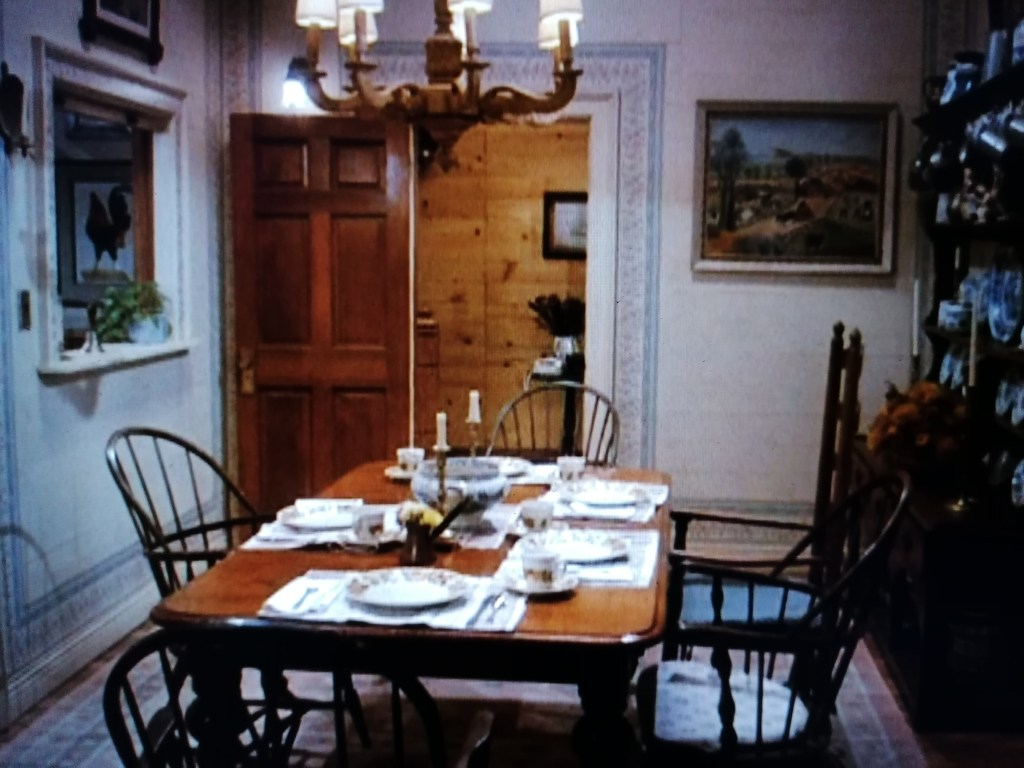 Uno degli ambienti che ritroviamo in questo episodio è la sala da pranzo, che si apre tra la cucina a sinistra e il salotto a destra: