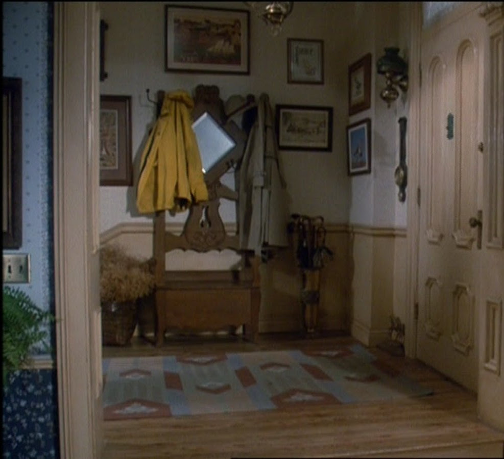 L’unico arredo vero e proprio è il mobile con specchio e appendiabiti in cui l’immancabile giacca gialla è sempre lì, a testimoniare la passione per la pesca di Jessica. E immancabile è anche l’impermeabile, pronto per essere indossato in caso ci sia da indagare su qualche mistero.